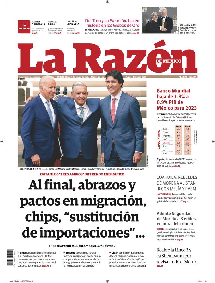 PRIMERA PLANAEvitan los “tres amigos” diferendo energético Se recuperaría en 2024 Elecciones 2023 Sheinbaum rechaza reducción de recursos 14 grupos delictivos que operan en la región Diego Luna y Diego Calva, con las manos vacías