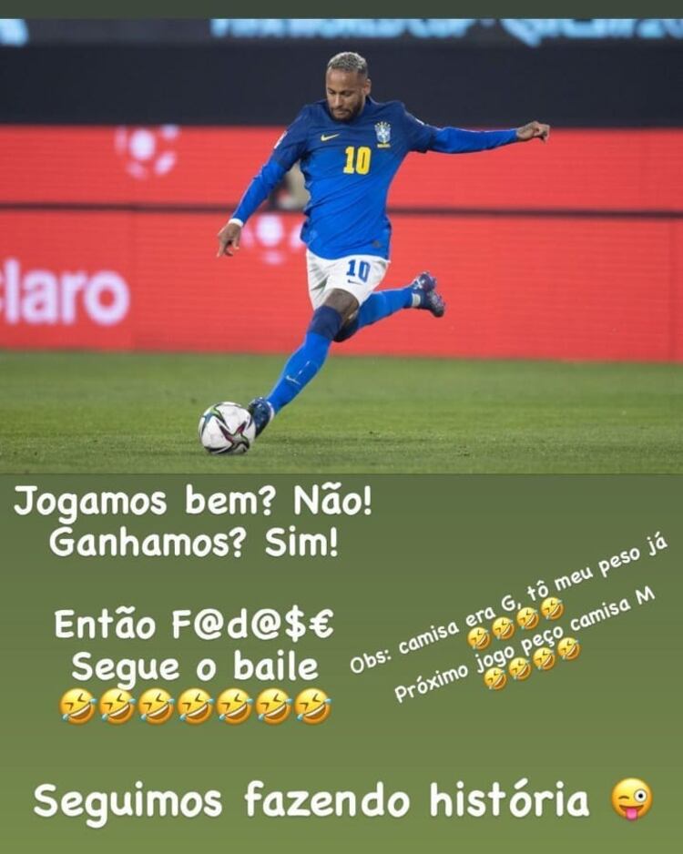 Sin embargo, Neymar destacó la victoria de su equipo en las Eliminatorias rumbo a Qatar 2022; el gol del partido fue obra de Everton Ribeiro, al minuto 64.