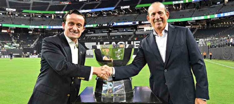 Mikel Arriola, mandamás de la Liga MX, y Don Garber, delegado de la MLS, en la primera ponencia del Summit 2022, hablaron sobre la relación y participación en conjunto de las organización en el torneo que se realizará durante un mes por año.