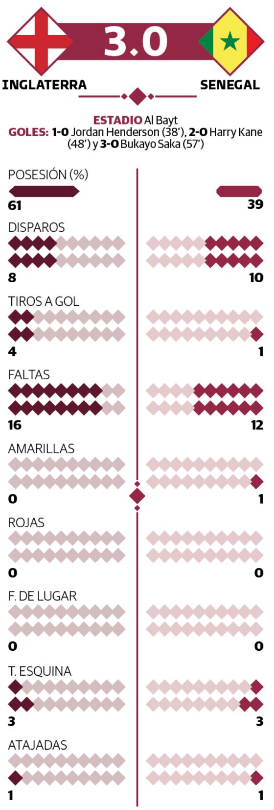 Al equipo de Los Tres Leones le costó abrir la defensa de Los Leones de Teranga, pero cerca del final de la primera parte Jordan Henderson abrió el marcador y mostró el camino para que los británicos tomaran el control total del partido.