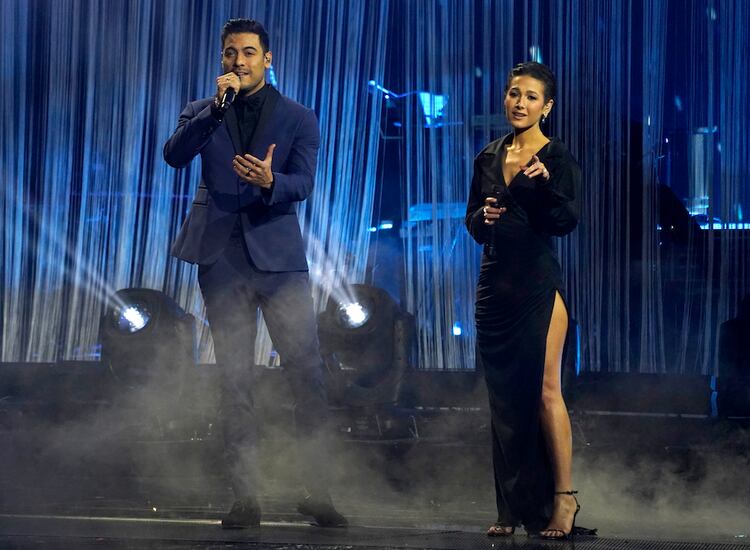 Mientras que la chilena Mon Laferte sorprendió con La Arrolladora Banda Limón interpretando “Se me va a quemar el corazón” y después con Mariachi, al lado de Gloria Trevi, cautivó con “La mujer”. Vistió un traje de charra de dos piezas para lucir su pancita de embarazada.