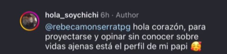 Por su parte, Christian Nodal reaccionó al comentario por medio de la cuenta del perro, pues escribió: "Hola corazón, para proyectarse y opinar sin conocer sobre vidas ajenas, está el perfil de mi papi", con una emoji de carita con corazones, con lo que deja en claro no estar de acuerdo sobre lo que se dice de su relación con su hija.