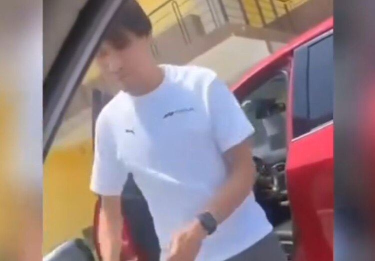 Posteriormente, el conductor se bajó de su vehículo para intentar agredir a su interlocutora, pero ella no abrió las puertas de su auto en ningún momento. Por ello, el joven solo alcanzó a lanzar puñetazos contra su auto. Uno de ellos, provocó daños en el espejo retrovisor.