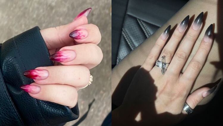 Si te vas a disfrazar de vampiresa o bruja en Halloween, estas son las uñas que debes de usar. Consigue el degradado con una esponja o aerógrafo y opta por colores oscuros como el negro, morado o rojo. Este último se conecta también con el estilo sangriento, logrando una mezcla espeluznante.