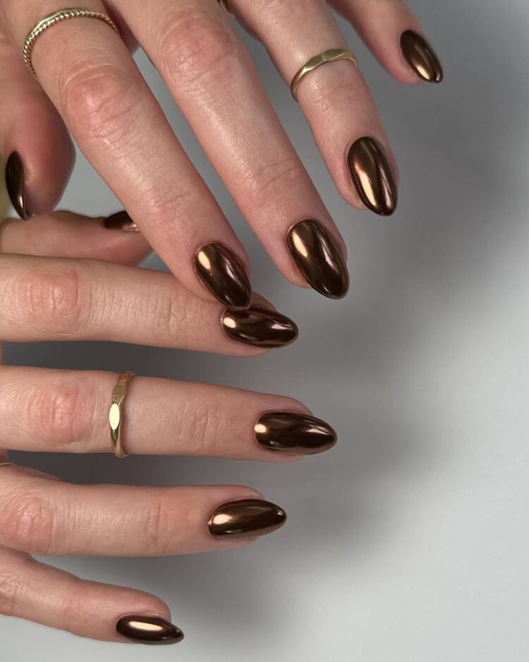Las uñas metálicas son uno de los estilos en diseño que han marcado el mes de diciembre de 2024 y continúan en 2025. A pesar de que ya han finalizado las fiestas especiales, aun puedes lucir este estilo que destaca por su sencillez. Puedes elegir los tonos comunes como el plateado, el dorado o el marrón o intentar algo más extremo con las uñas azules metálicas.
