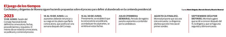 “El Consejo analizará la propuesta de este tipo de planteamientos y luego fijará las fechas y el calendario para poder participar y también para que los aspirantes se sometan a ciertos lineamientos, como el de las renuncias o el de realizar reuniones”, dijo Monreal.