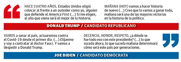 Sus eventos de cierre de campaña contrastaron fuertemente pero fueron un reflejo de los retos que cada uno asumió en esta contienda. Trump reunió a miles de partidarios a pesar de la pandemia de coronavirus, mientras que Biden optó por los eventos de autocine para no corromper el distanciamiento.