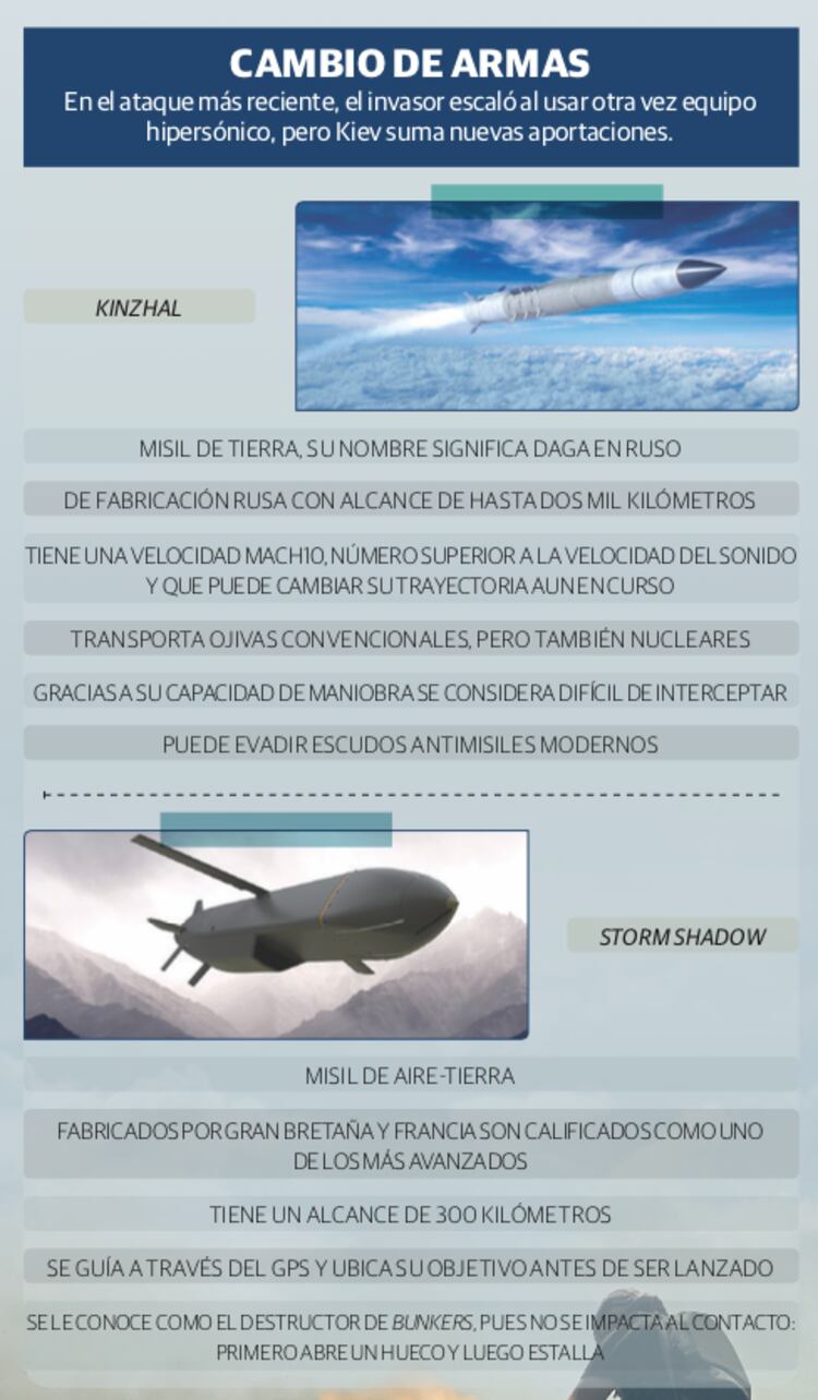 Poco después la amenaza se convirtió en real cuando el ejército invasor activó una oleada con misiles hipersónicos Kinzhal, con una velocidad 10 veces superior a la del sonido y que pueden cambiar de objetivo aunque hayan sido lanzados.