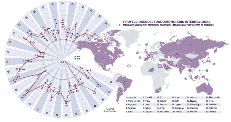 La estimación de crecimiento para 2025 también tuvo un cambio, ya que el FMI la situó en 1.4 por ciento, mientras que en el informe de julio, la incrementó en 0.2 puntos porcentuales para dejarla en 1.6 por ciento.