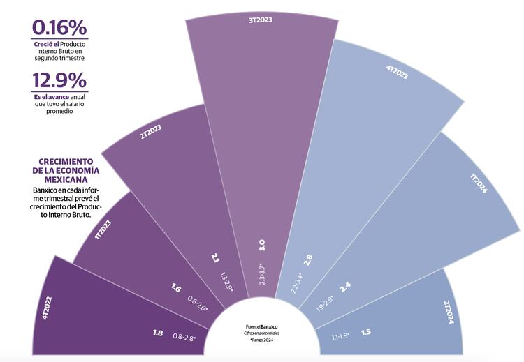 En su Informe Trimestral abril-junio 2024, el Banxico señaló que esta contracción se debe a que la demanda externa seguirá mostrando una baja contribución al crecimiento en México durante 2024, ante la expectativa de que persista la debilidad en el sector manufacturero en Estados Unidos.