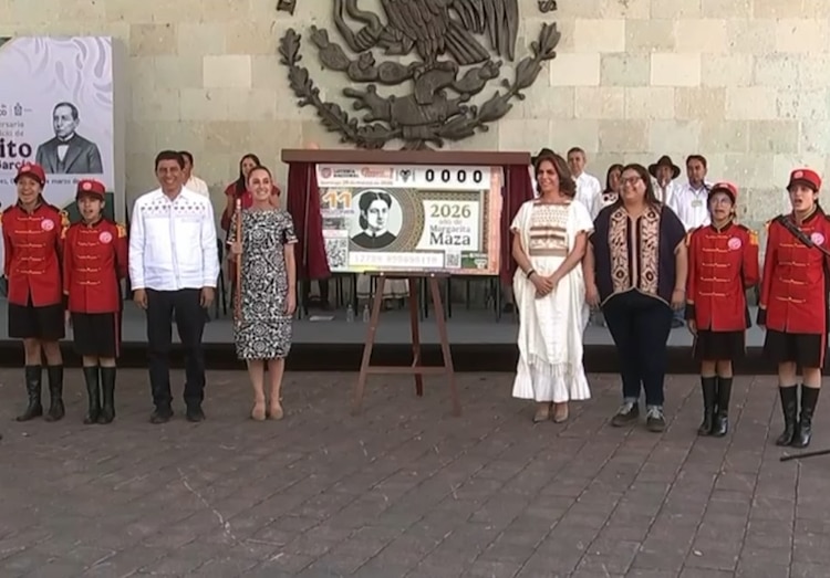 Desde Guelatao de Juárez, Oaxaca, la Presidenta de México, Claudia Sheinbaum Pardo, y la directora general de Lotería Nacional, Olivia Salomón, develaron el billete conmemorativo que rinde homenaje al “2026, año de Margarita Maza”, diseñado en el marco del Sorteo Zodiaco Especial No. 1740.
