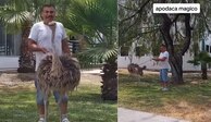 VIDEO | Un hombre saca a pasear a su avestruz; "que bonito su perro", le bromean