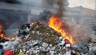 Trabajadores de limpia protestan en oficinas de Gobierno con vandalismo y quema de basura