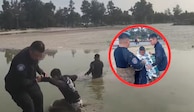 Forman cadena humana para rescatar a hombre atrapado en lago del Bosque de Aragón