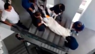 VIDEO | Elevador prensa camilla en hospital de Monterrey; un camillero se salva