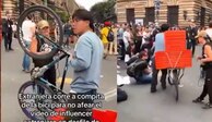 Extranjera corre a joven con su bicicleta del Zócalo porque le tapaba la vista | VIDEO
