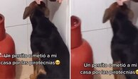 Pirotecnia asusta a perrito callejero y se refugia en una casa en Navidad (VIDEO)