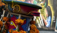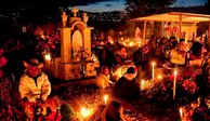Cubren el Panteón de Mixquic con manto de luz color naranja