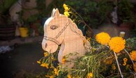 Caballos de madera ‘cargan’ ofrendas en la Noche de Muertos, una tradición en Cuanajo