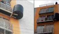 FOTOS: Vecinos en Iztacalco colocan tinaco en un balcón, apoyado solo con tablas y un lazo; desata polémica en redes