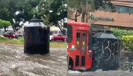VIDEO. Tinaco de 5 mil litros navega en avenida inundada y choca contra un autobús