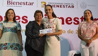 Sheinbaum entrega tarjetas de las pensiones para mujeres y adultos mayores en Veracruz