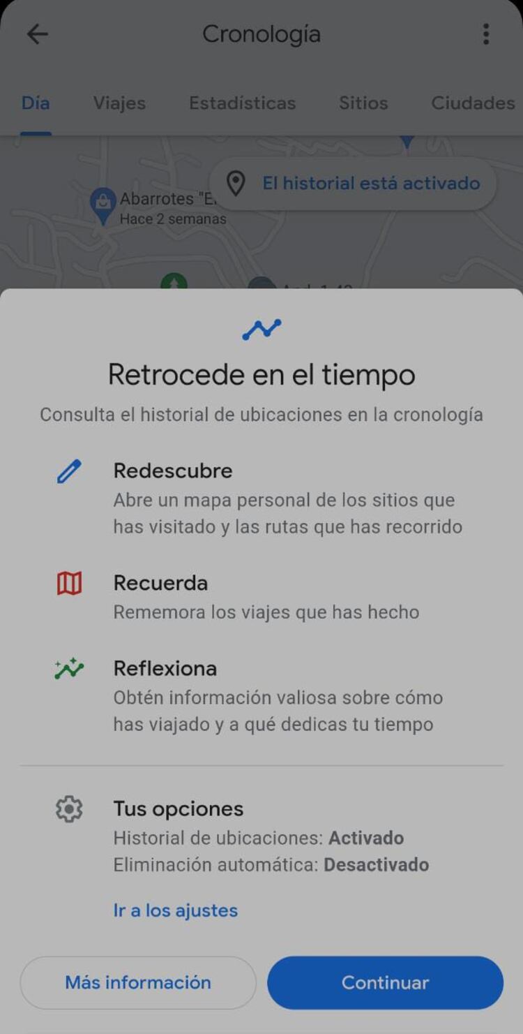 Para ver la Cronología de Google Maps sigue los siguientes pasos: