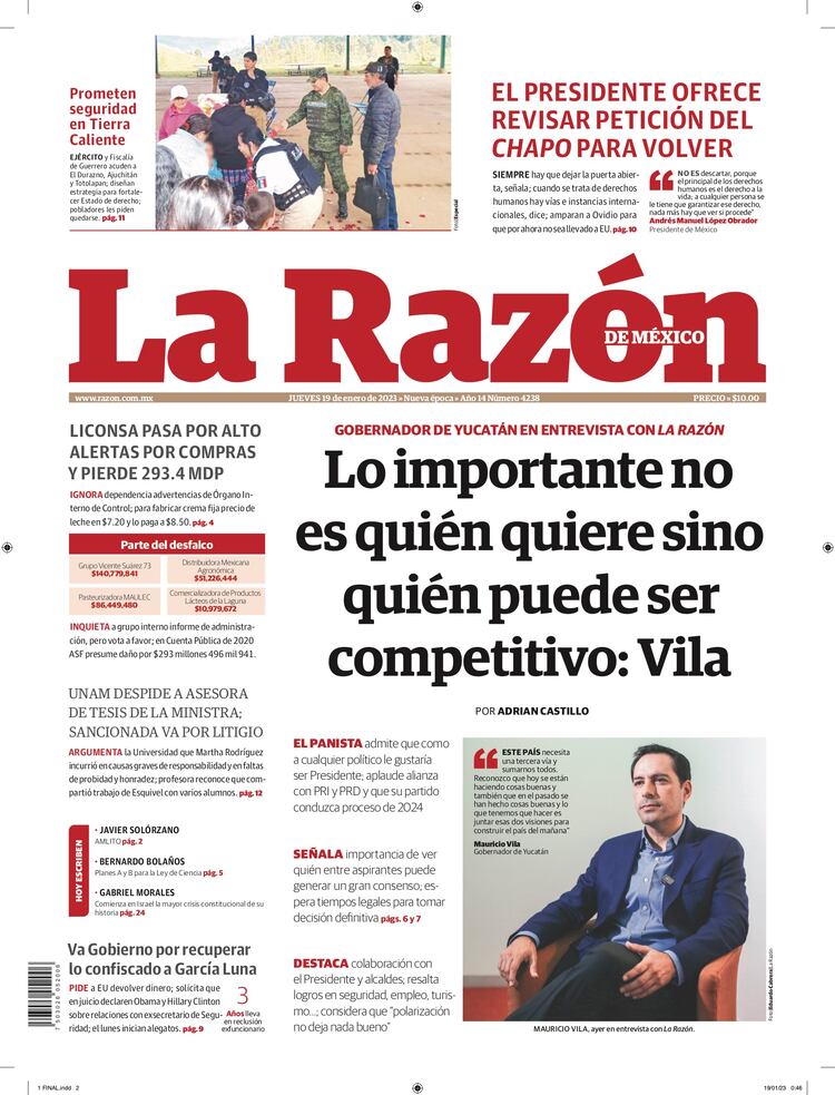 PRIMERA PLANAGobernador de Yucatán en entrevista con La Razón Provoca desfalco al erario, señala la ASF Suspenden relación de trabajo Alistan juicio Alega supuestas violaciones a sus derechos humanos Actividades de la Brigada “Fiscalía a Tu Alcance”