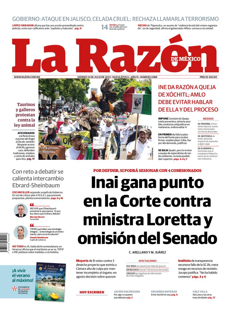 PRIMERA PLANAPor definir, si podrá sesionar con 4 comisionados Promete que no habrá impunidad Pide bajar 4 mañaneras Proceso electoral 2024