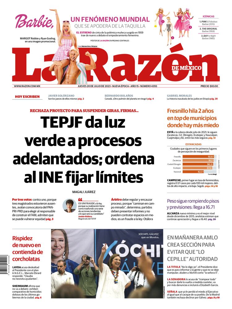 62% se siente en riesgo en su localidad, revela Inegi La famosa muñeca llega a cines Según datos del Banco de México