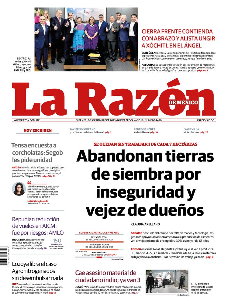 PRIMERA PLANASe quedan sin trabajar 1 de cada 7 hectáreas Proceso electoral 2024 Recurso que pidió el Gobierno ya no se tendrá Quiere descarrilar el proceso de Morena, dice Por saturación de la terminal aérea Tras operaciones conjuntas