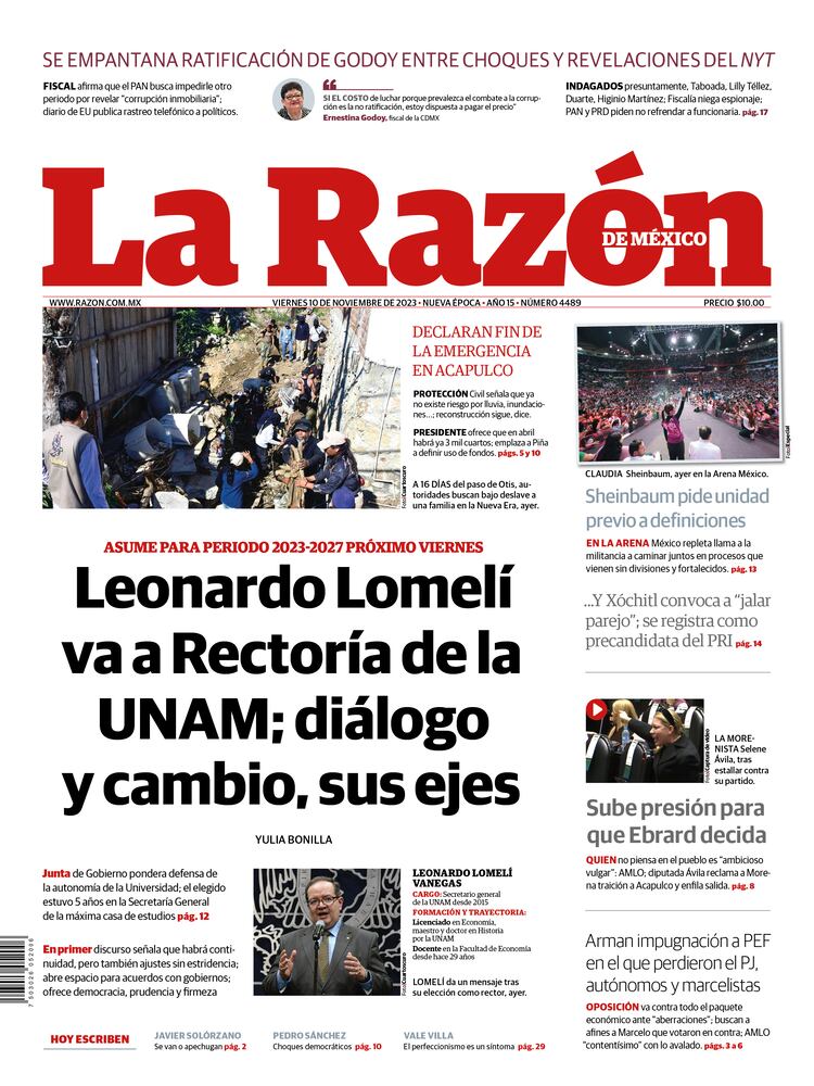 PRIMERA PLANAAsume para periodo 2023-2027 próximo viernes Fiscal capitalina advierte: “No negociaré la ley” Presentará un solo documento Pide no presionar a nadie Saldo de fallecidos se mantiene en 48 Sheinbaum pide unidad previo a definiciones Proceso electoral 2024