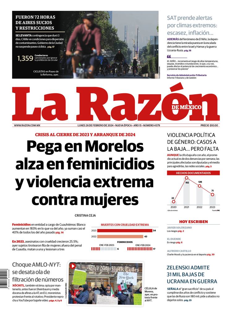 Constitucionalistas piden presentar denuncias INE documenta 352 quejas entre abril del 2020 y enero del 2024 Conflictos geopolíticos, otro riesgo Da primer saldo a dos años de la guerra Zona Metropolitana del Valle de México