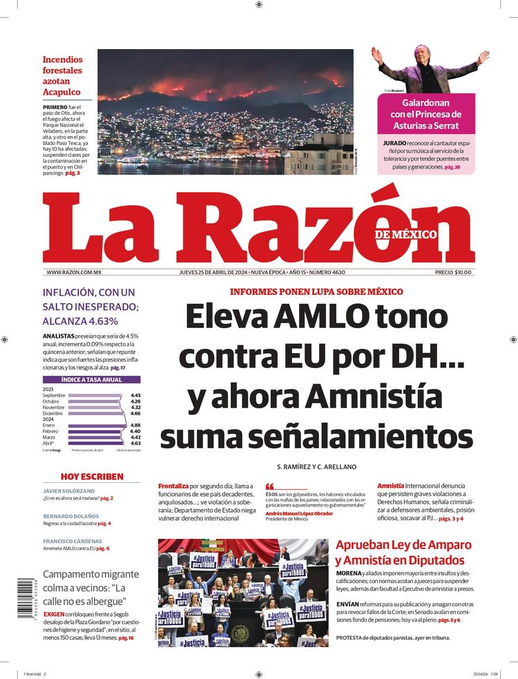 PRIMERA PLANAInformes ponen lupa sobre México Alista otra iniciativa contra resolutivos de la Corte Dato puede incidir en decisión de Banxico Plaza Giordano Bruno Incendios forestales Gana el Princesa de Asturias de las Artes