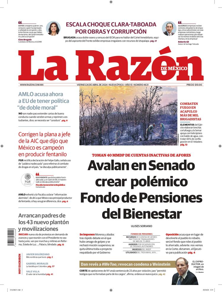 No son nadie para hablar de buena conducta, dice Caso Cártel Inmobiliario Sobrevivientes acusan traición Se continúa trabajando para la atención de los incendios que se han presentado en Acapulco
