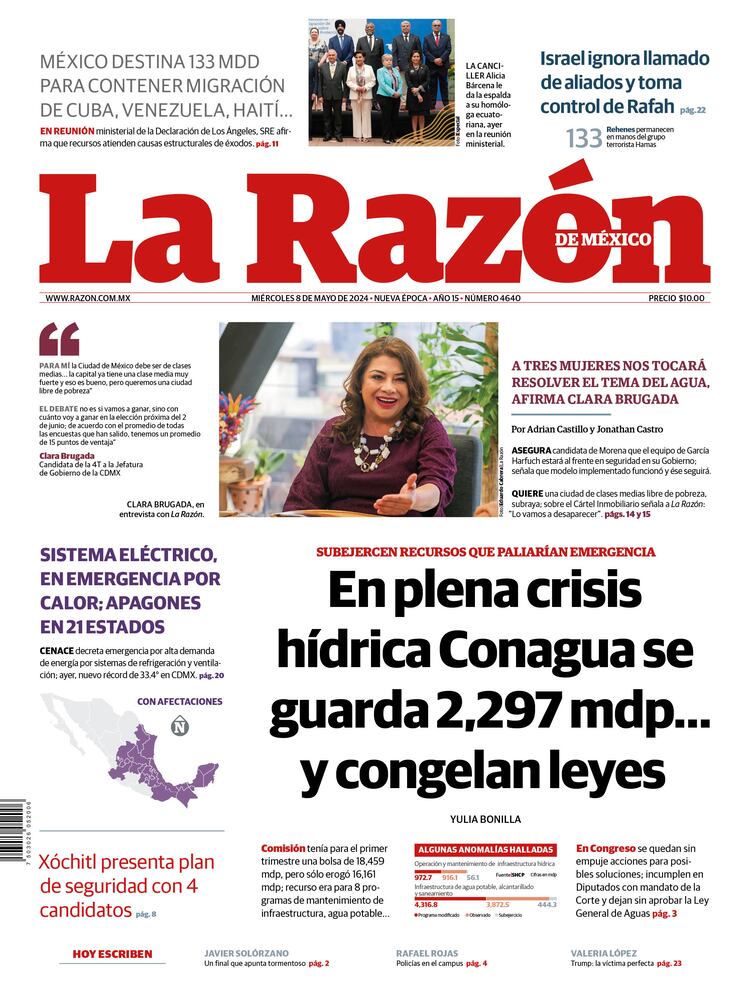 PRIMERA PLANASubejercen recursos que paliarían emergencia A tres mujeres nos tocará resolver el tema del agua, afirma Clara Brugada Crisis migratoria Centro Nacional de Control de Energía Califican de Advierten por mayor hambruna